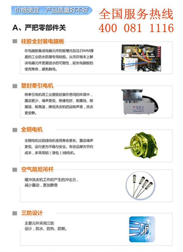 20、良好的服務(wù),放心。每臺(tái)洗衣機(jī)都配有質(zhì)量服務(wù)卡,有全國(guó)免費(fèi)服務(wù)熱線4000811116 ,可以再最短的時(shí)間內(nèi)給予用戶及時(shí)、有效的保證,使用更舒心,更放心。