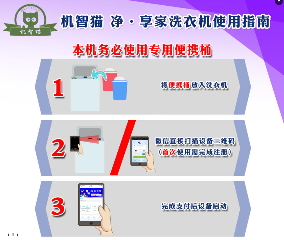 - 流程極簡易上手:僅需 “裝衣入桶 — 放桶入機 — 掃碼付款” 三步即可啟動,鋼化玻璃面板防水耐潮,搭配 24 小時全天候待機,深夜趕 due 后、早八前等碎片化時間均可隨時使用,無需等待或學習復雜操作。